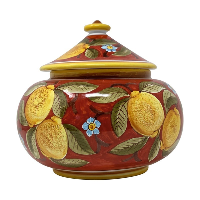 Biscotti jar 10x10x9,5" with Positano Red decoration