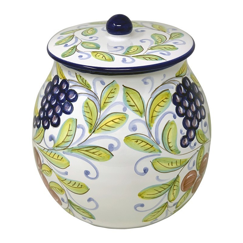 Don't forget to save your customization to be able to add to cartHand painted biscotti jar 9,5x9,5x10" with Fruit decoration.