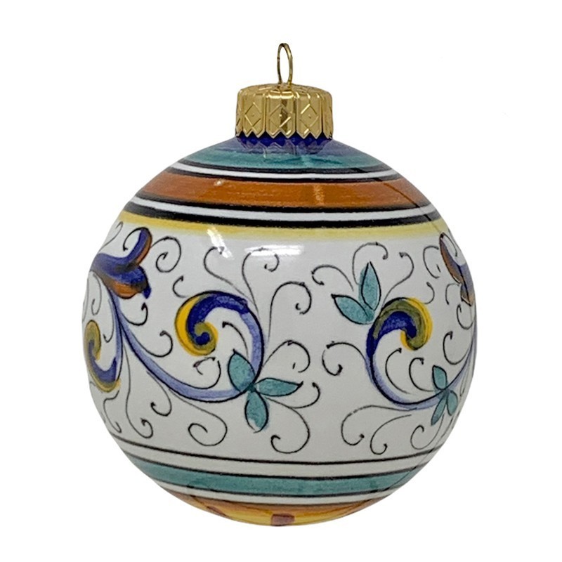Don't forget to save your customization to be able to add to cartHand painted Christmas Ornament 8x3" with Ricco Deruta decoration. The Ricco Deruta decoration is one of the most representative decorations of Deruta and its ceramics. A decoration that dates back to the early 1500s and was also taken up by the fabulous painter Pietro di Cristoforo Vannucci, known as il Perugino.