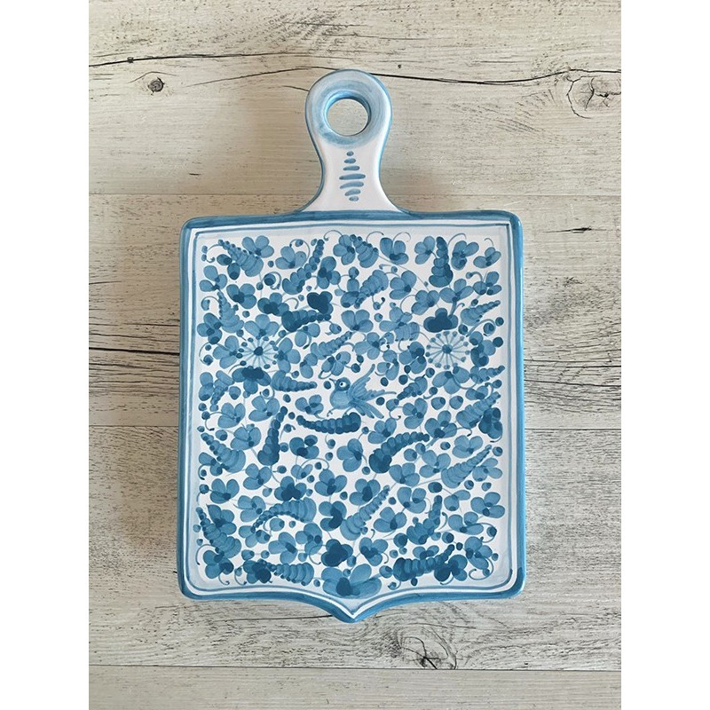 Don't forget to save your customization to be able to add to cartHand Painted Cutting Board 14x8" with Arabesco Turquoise decoration. The Arabesco decoration was born in the seventeenth century and depicts a bird hidden among undulating branches, with dense foliage, flowering branches and clumps of flowers. In this case it's made entirely with the turquoise color.