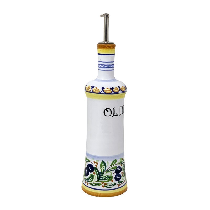 Hand painted oil bottle 12,2" with Olive decoration, perfect for you kitchen.