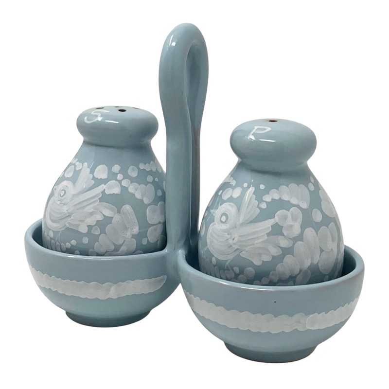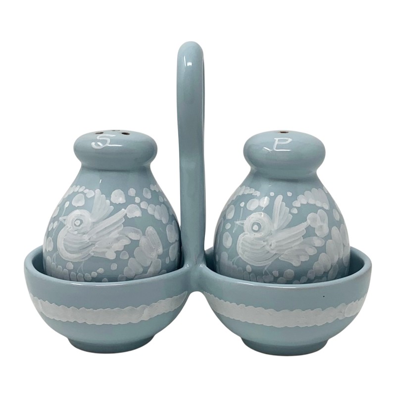 Hand painted salt & pepper set 6x5x2,5" with Nuvola decoration.
