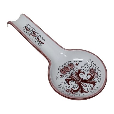 Hand painted spoon rest 11" with the typical decoration of Deruta, the Ricco Deruta. The Ricco Deruta decoration is one of the most representative decorations of Deruta and its ceramics. A decoration that dates back to the early 1500s and was also taken up by the fabulous painter Pietro di Cristoforo Vannucci, known as il Perugino.