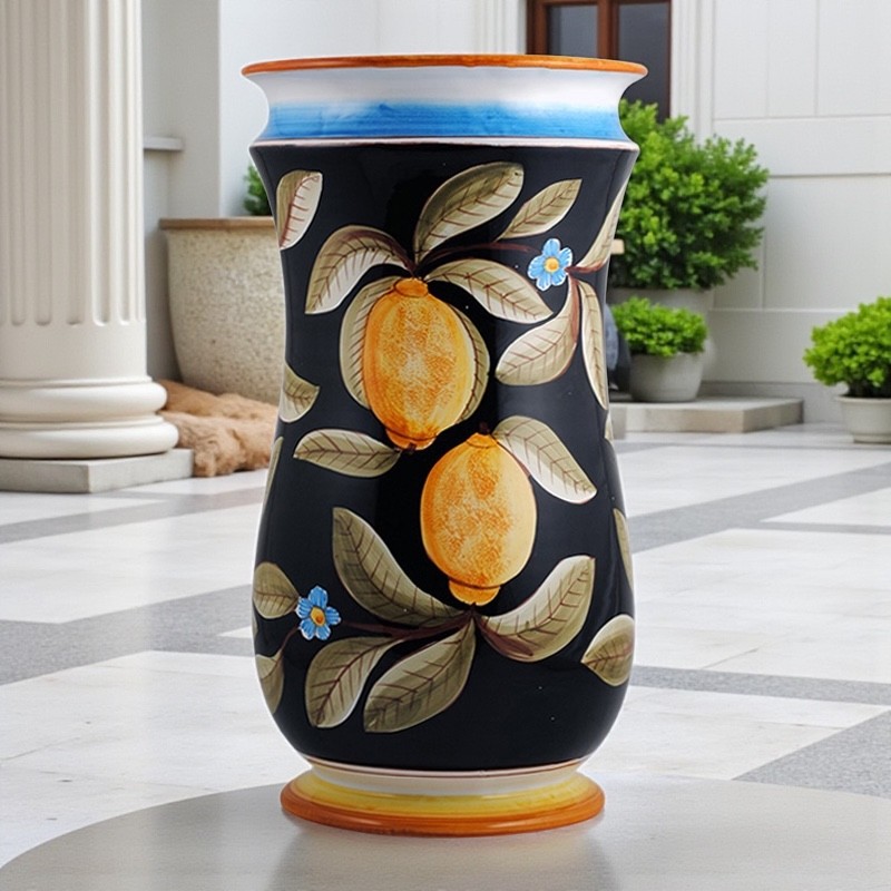 Don't forget to save your customization to be able to add to cartHand made and hand painted umbrella stand 20" with lemons and flowers with red or black background.