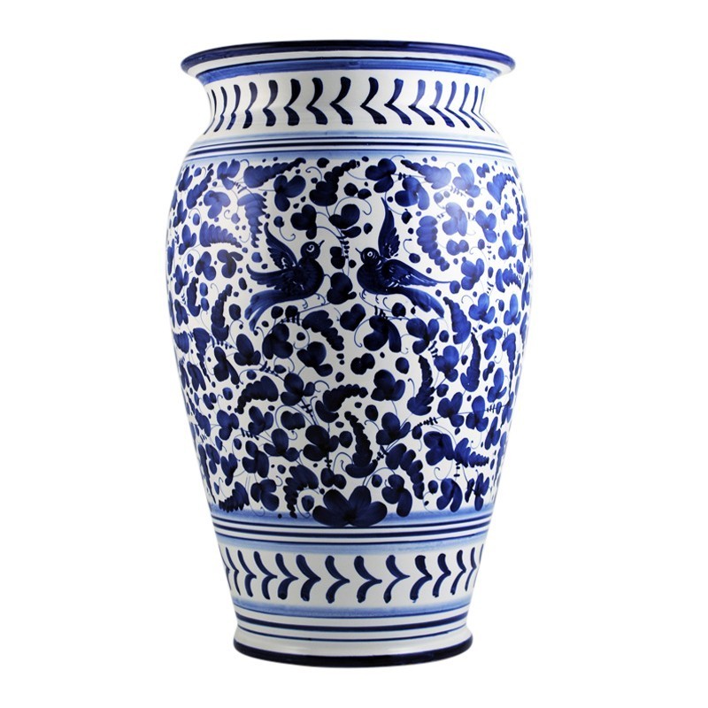 Don't forget to save your customization to be able to add to cartHand made and hand painted umbrella stand 20" with Blue Arabesco decoration. The Arabesco decoration was born in the seventeenth century and depicts a bird hidden among undulating branches, with dense foliage, flowering branches and clumps of flowers.