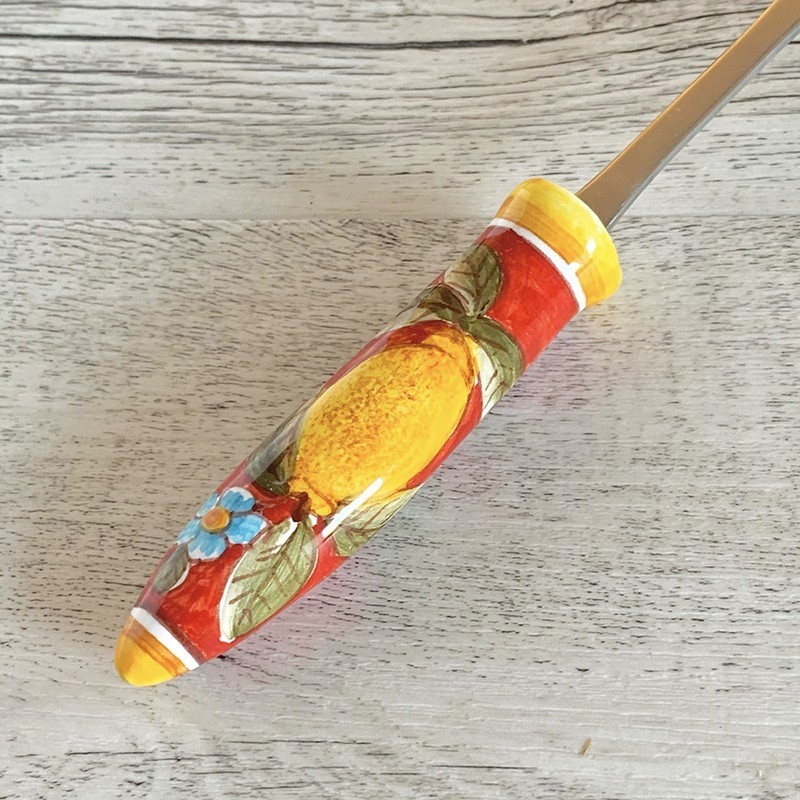 Hand painted Spaghetti Server with Red Positano decoration. Lemons and flowers with red color background.