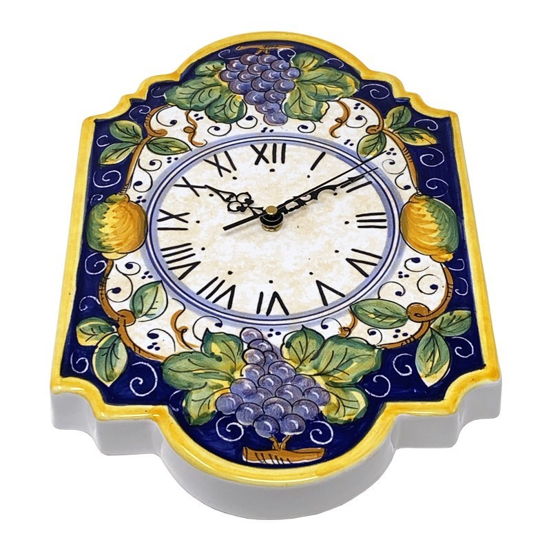 Don't forget to save your customization to be able to add to cartHand painted wall clock 15x10x1,6" whit Bacco decoration, lemons and grapes with blu cobalto background.