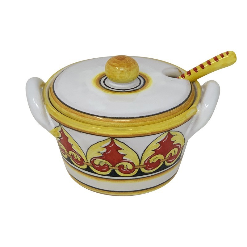 Formaggiera con mestolo dipinta a mano con decoro Sofia