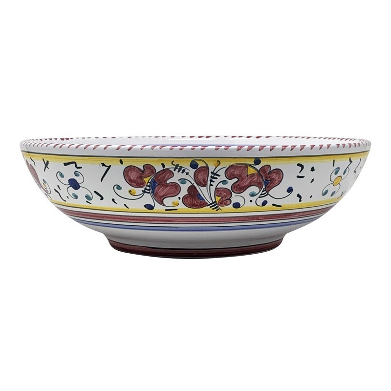 Insalatiera dipinta a mano con decoro Orvieto. Questo decoro nasce durante il Rinascimento proprio nella città di Orvieto. Disponibile in tre colorazioni: Blu, Rosso o Verde Acqua.