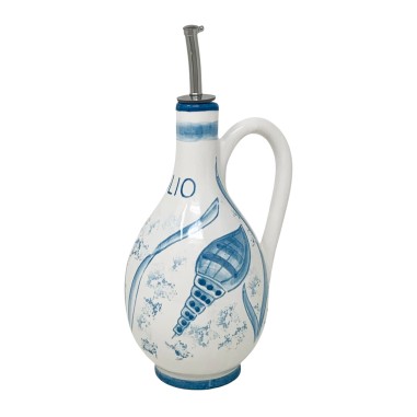 Oliera 20cm dipinta a mano con decoro Vita di Mare, una celebrazione della profondità e della serenità degli abissi marini, espressa attraverso una palette monocromatica di blu o turchese.