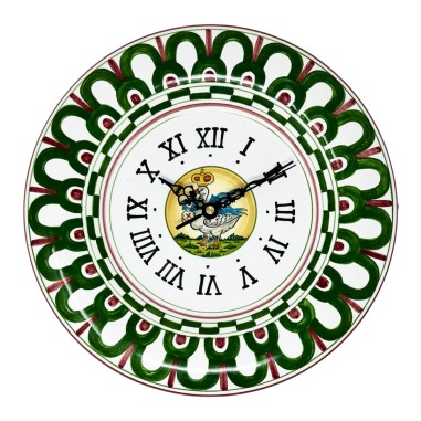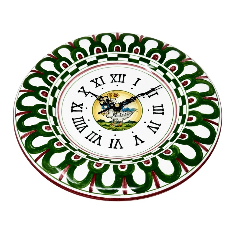 Orologio da muro 30cm dipinto interamente a mano con decoro Palio di Siena - Oca. Il più antico documento riguardo il palio e le più antiche testimonianze delle Contrade risalgono al tredicesimo secolo: la parola "contrada" originariamente significava "strada abitata", poi "quartiere" ed infine "associazione degli abitanti di un distretto".