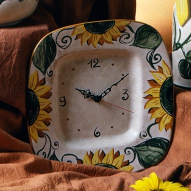 Orologio da muro 32x32cm dipinto interamente a mano con il decoro Girasole.