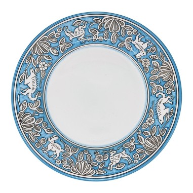 Piatto da tavola dipinto a mano con decoro Lepre in due diverse tonalità di colore, beige e turchese.