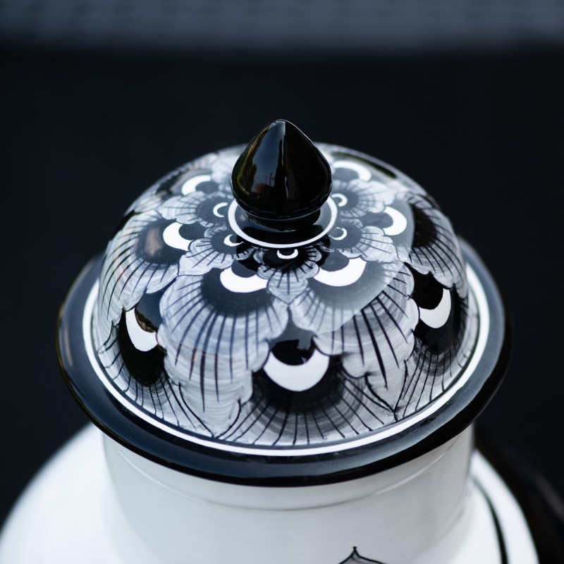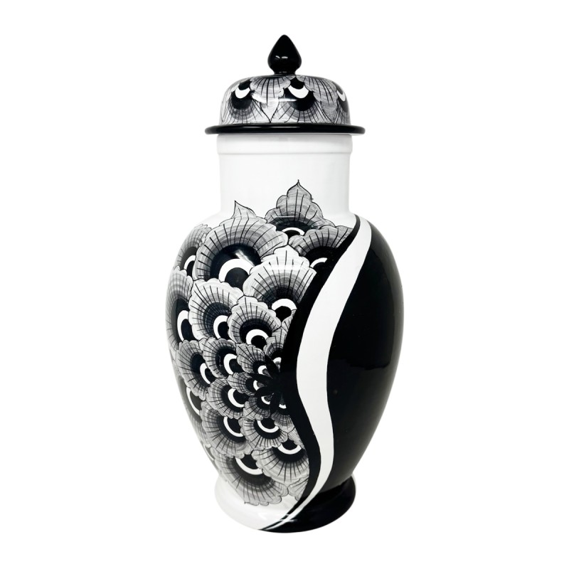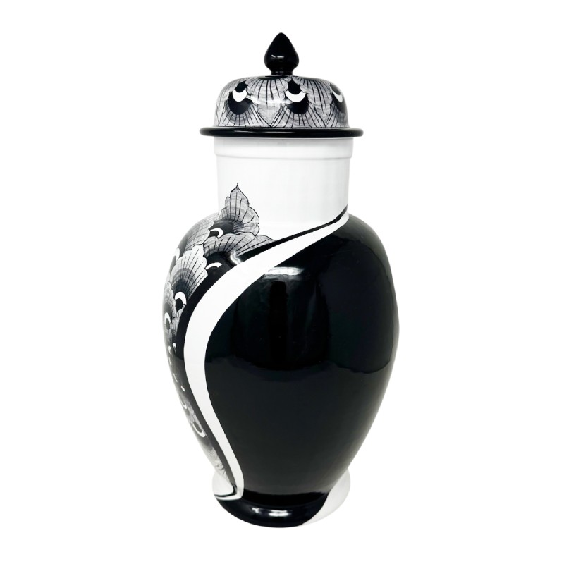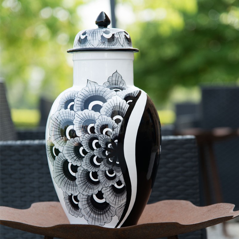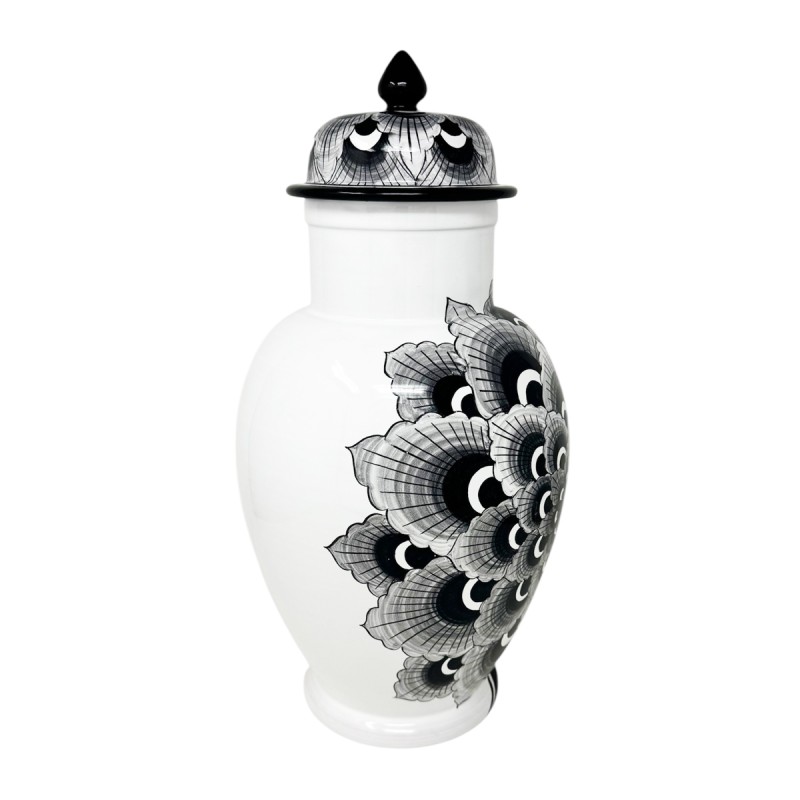 Pavone Nero prende il classico e sontuoso decoro Pavone e lo riveste di una nuova, affascinante identità. Le vivaci pennellate di colore lasciano il posto a un gioco sofisticato di toni neri e grigi, che esalta i dettagli e le forme iconiche della tradizione. Non è solo un contrasto cromatico, ma un incontro tra passato e futuro, tra il patrimonio artistico e il design contemporaneo.